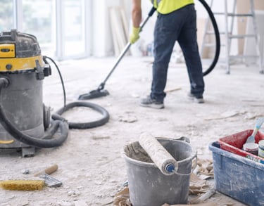 Après des travaux, vos locaux méritent une remise en état complète. Nous éliminons poussières de plâtre, résidus de peinture et débris pour des locaux prêts à l'emploi.